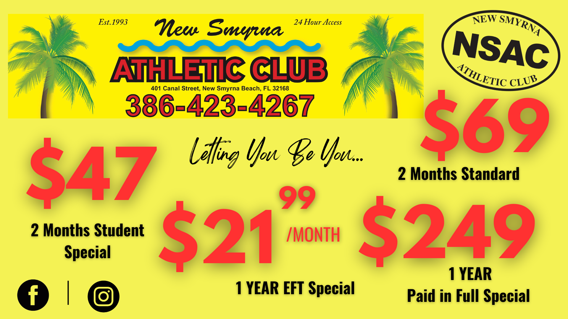 The months of September and October are our Hurricane Watch months, and we just like to always remind our patrons that NSAC will only close its doors if a hurriance is predicted to be on a direct path to our area that would cause lengthy power outages. We do our best to notify members of such closures both on Facebook, with signs posted on our doors and via email. We all hope this does not happen this hurricane season, but stay tuned should something be headed in our direction.